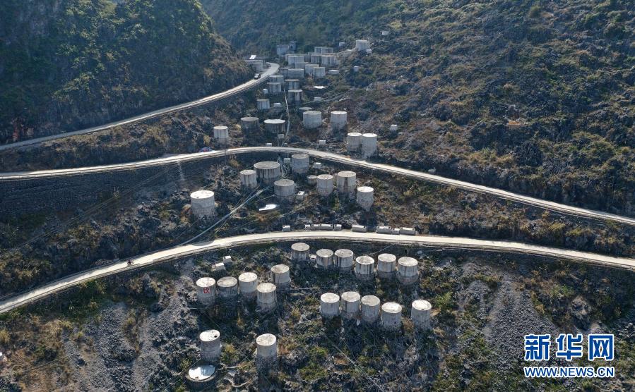 这是广西大化瑶族自治县江南乡上和村群众的家庭水柜(2月6日摄,无人机照片)。新华社记者 张爱林 摄