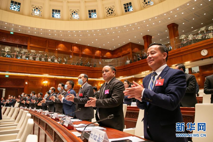 这是3月22日在老挝首都万象拍摄的老挝第九届国会第一次会议现场。