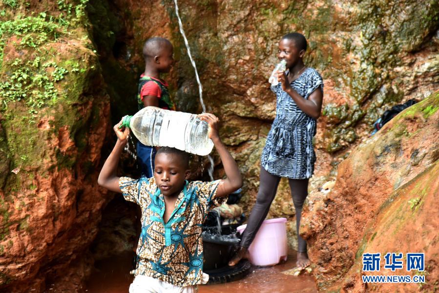 3月19日,喀麦隆儿童在雅温得灌装泉水。