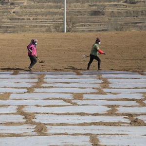 连日来,位于黄土高原上的甘肃省定西市安定区的农民抢抓农时,覆地膜保墒,确保春耕春播顺利进行。新华社发(王克贤 摄)