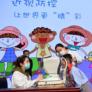当日,河北省沧州市实验小学邀请沧州眼科医院的“眼卫士”医生志愿服务队走进校园,开展爱眼护眼公益讲座,并为孩子们进行视力健康普查,建立“视力档案”。今年3月是教育部部署的春季学期近视防控宣传教育月。新华社发(傅新春 摄)