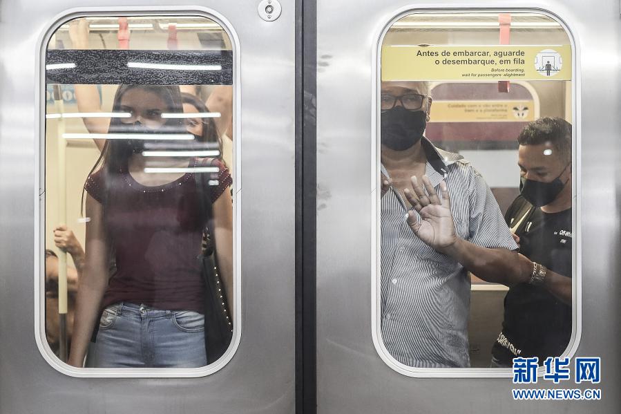 3月22日,人们戴口罩在巴西圣保罗乘坐地铁。