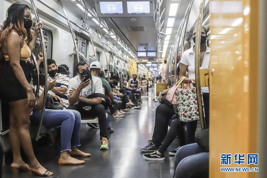 3月22日,人们戴口罩在巴西圣保罗乘坐地铁。新华社发(拉赫尔·帕特拉索摄)