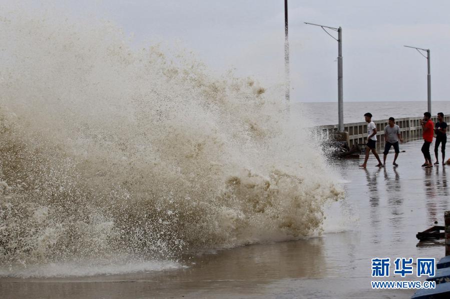 2020年5月20日,海浪拍击孟加拉国吉大港的海岸。特强气旋风暴“安攀”当日登陆孟加拉湾沿海地区。