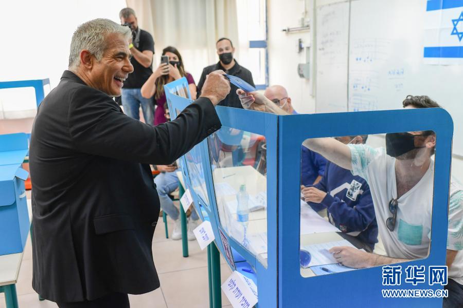 3月23日,以色列中左翼政党“拥有未来”党领导人拉皮徳(左)在耶路撒冷的一个投票站参加投票。
