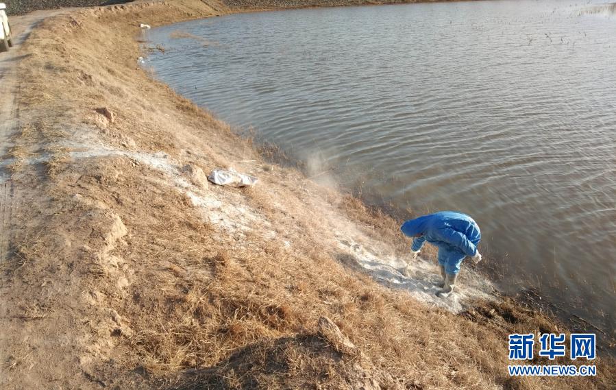 3月21日,达拉特旗疫控人员对黄河国堤内死猪打捞地进行消毒。