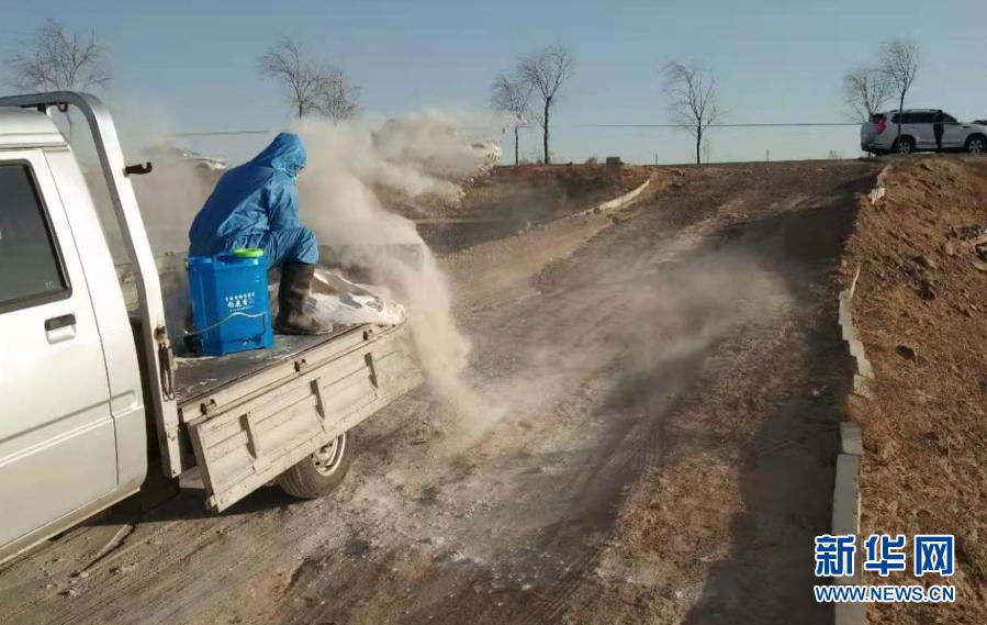 3月21日,达拉特旗疫控人员对黄河国堤内死猪丢弃区域进行消毒。
