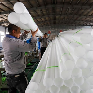 春耕时节,用于建设高标准农田的各类节水管材销售走俏,河北省玉田县的节水管材企业组织工人加紧生产,满足市场需要。目前,玉田县有节水管材生产及配套企业近400家。新华社发(刘满仓 摄)