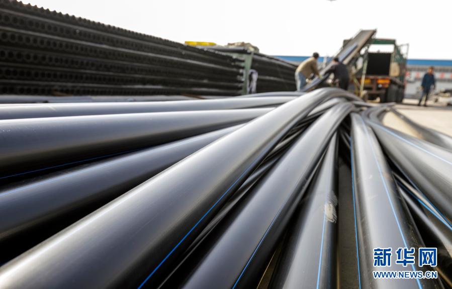 春耕时节,用于建设高标准农田的各类节水管材销售走俏,河北省玉田县的节水管材企业组织工人加紧生产,满足市场需要。目前,玉田县有节水管材生产及配套企业近400家。新华社发(刘满仓 摄)