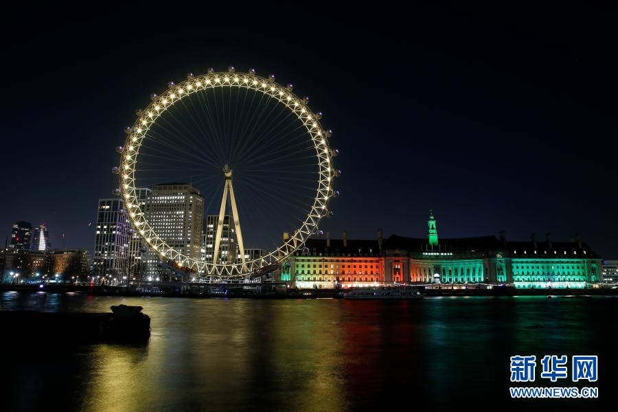 这是3月23日晚在英国伦敦拍摄的点亮黄色灯光的“伦敦眼”。新华社记者 韩岩 摄