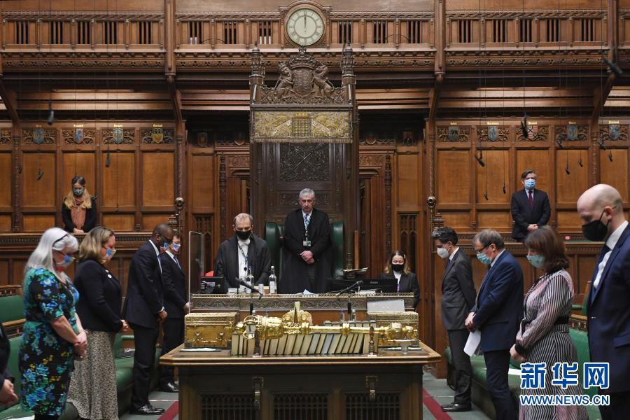 3月23日正午12点,英国伦敦议会下议院议员默哀。新华社发(英国议会摄影师杰西卡·泰勒摄)