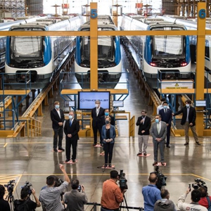 这是3月23日在智利首都圣地亚哥拍摄的轨道列车。新华社发(豪尔赫·比列加斯摄)