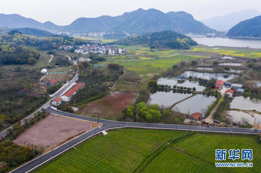 3月24日拍摄的诸暨市同山镇王沙溪村修复提升后的村级公路(无人机照片)。