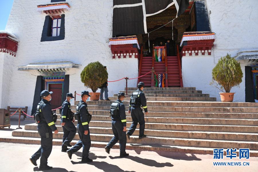 布达拉宫消防救援大队队员准备进入宫殿检查消防设施(3月4日摄)。