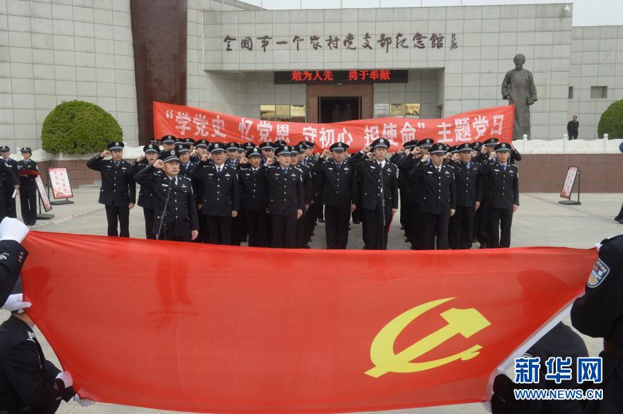 3月24日,河北出入境边防检查总站民警在安平县台城村全国第一个农村党支部纪念馆重温入党誓词。