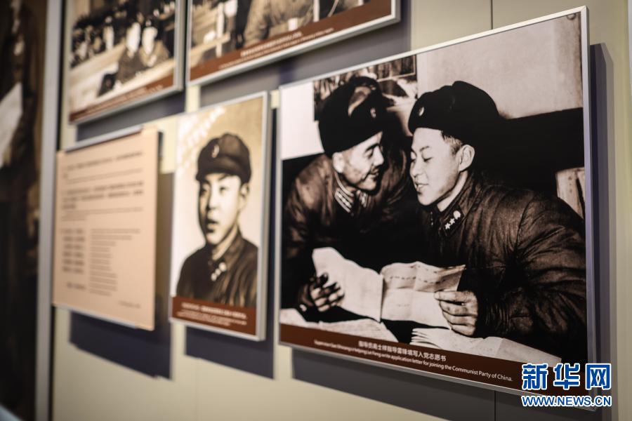抚顺市雷锋纪念馆内展示的照片:指导员高士祥指导雷锋填写入党志愿书(3月18日摄)。
