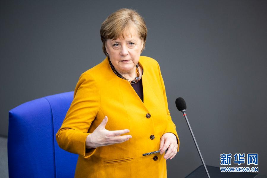 德国总理默克尔24日临时召集各州州长举行视频会议并达成协议,撤回23日凌晨达成的将于4月1日至5日复活节假期期间采取严格防疫措施的决议。新华社发(弗洛里安·格特纳摄)