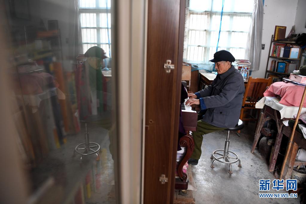 3月23日,严明友在宿舍里弹钢琴。新华社记者 刘军喜 摄