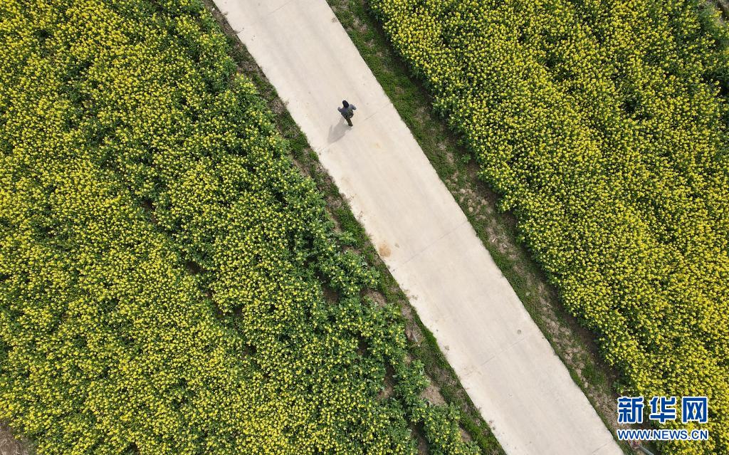 3月23日,严明友步行前往朱湾镇复兴小学上音乐课(无人机照片)。新华社记者 刘军喜 摄