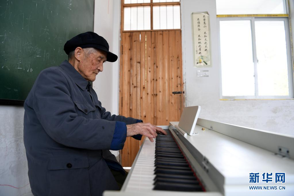 3月23日,严明友在复兴小学音乐教室里教孩子们唱歌。新华社记者 刘军喜 摄