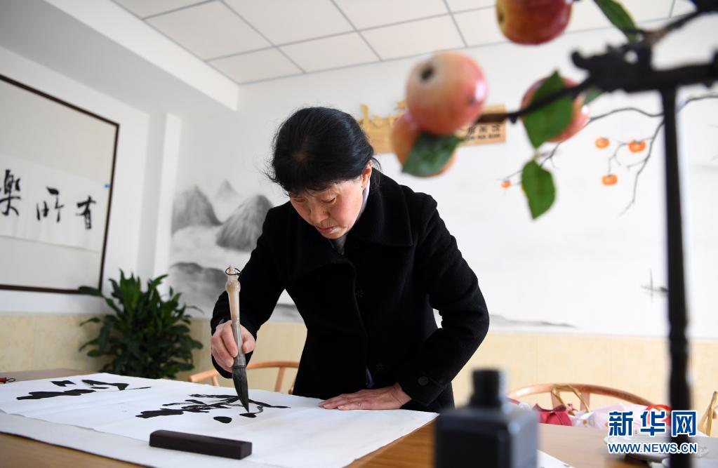 3月25日,老人在上派镇“爱和家”居家养老服务中心练习书法。