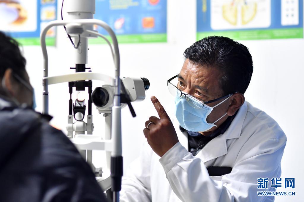 3月24日,西藏拉萨光明眼科康复诊疗院医生对白内障患者进行检查。