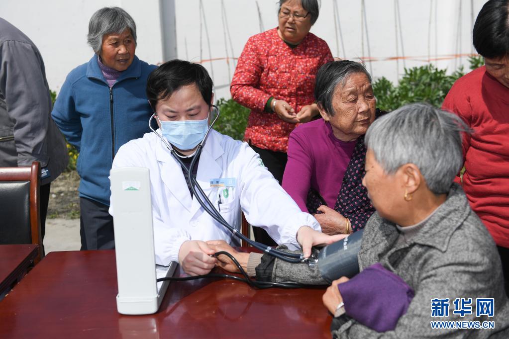 浙江湖州吴兴区环渚街道定期向金锁村老年过渡房里的老人们送上健康服务,通过健康诊断、健身操、穴位按摩、资料宣传等形式,对老人进行健康监测、传递健康理念。