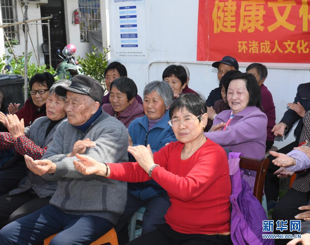 浙江湖州吴兴区环渚街道定期向金锁村老年过渡房里的老人们送上健康服务,通过健康诊断、健身操、穴位按摩、资料宣传等形式,对老人进行健康监测、传递健康理念。