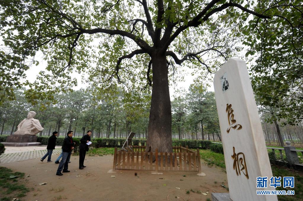 游客在兰考县“焦桐”纪念地参观(2011年11月7日摄)。