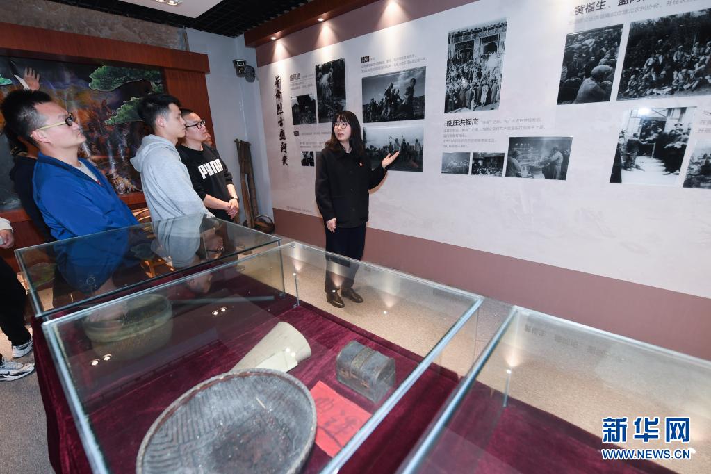 3月25日,在姚庄镇姚庄村“农运星火——姚庄革命斗争史陈列室”,青年宣讲团的吴甚妍(右一)为入党积极分子讲述嘉善地方农民运动事迹。