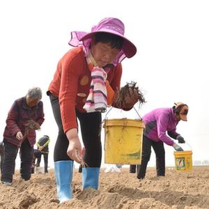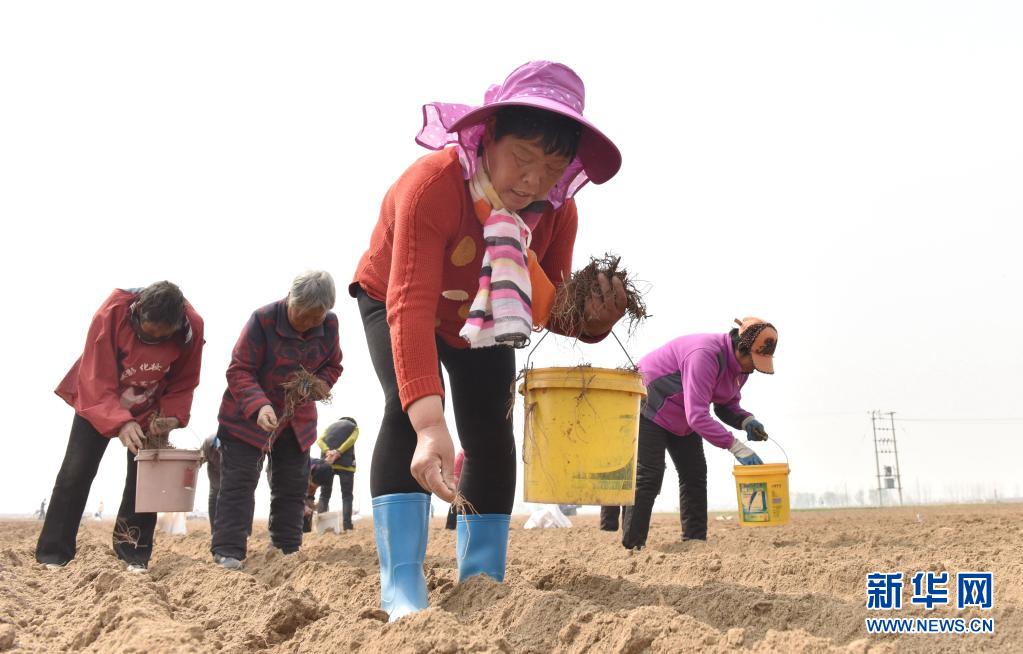 3月25日,河北省邢台市南和区三思镇西南部村农民在播种紫菀。