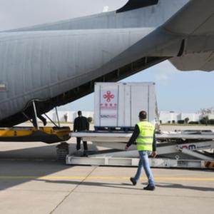 当日,中国援助的科兴新冠疫苗由突尼斯军机运抵突尼斯迦太基国际机场。
