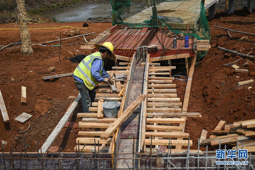3月25日,工人在海南洋浦经济开发区洋浦滨海湿地公园项目工地施工。