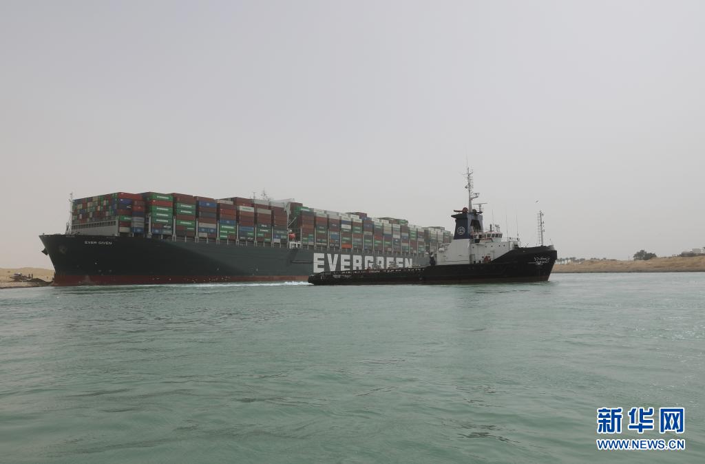 这是3月25日在埃及苏伊士运河拍摄的重型货船搁浅现场。