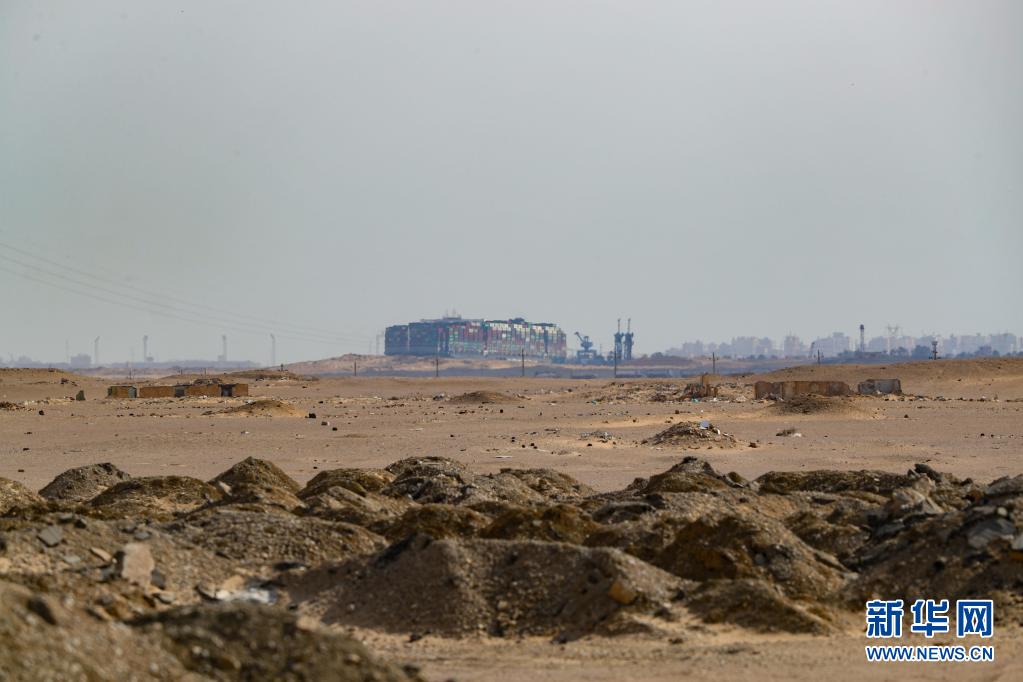 这是3月25日拍摄的在埃及苏伊士运河中搁浅的货船。新华社记者隋先凯摄