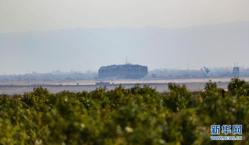 这是3月25日拍摄的在埃及苏伊士运河中搁浅的货船。新华社记者王东震摄