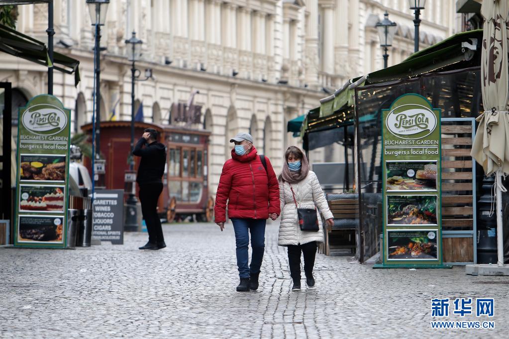 3月25日,戴口罩的行人走在罗马尼亚首都布加勒斯特老城区空旷的街头。新华社发(克里斯泰尔摄)