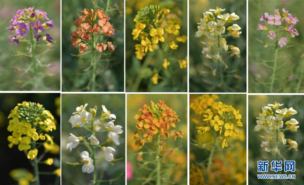 这是在江西农业大学的试验田里拍摄的不同颜色的油菜花(3月24日摄,拼版照片)。新华社记者 彭昭之 摄