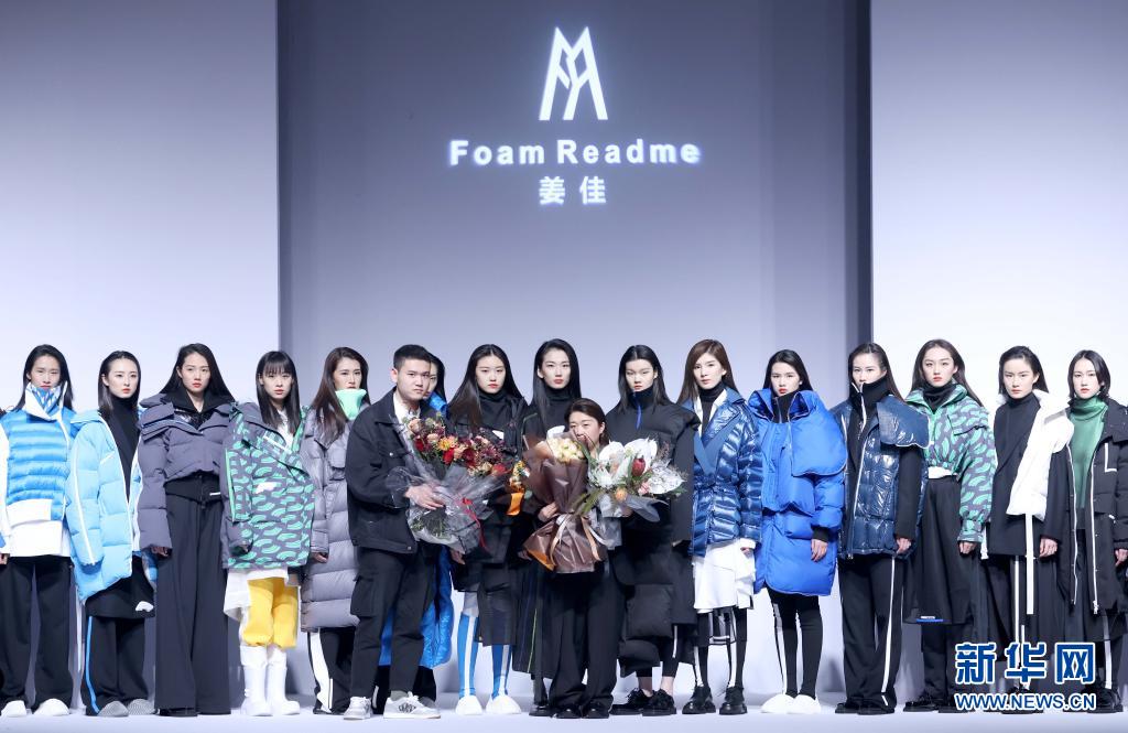 3月26日,设计师姜佳(前中)和模特在北京举行的2021秋冬中国国际时装周“沫兮·姜佳”时装发布会上谢幕。