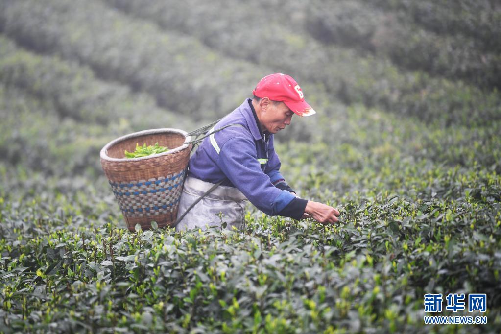 3月26日,茶农在永川区永荣镇天王山茶园采摘茶叶。
