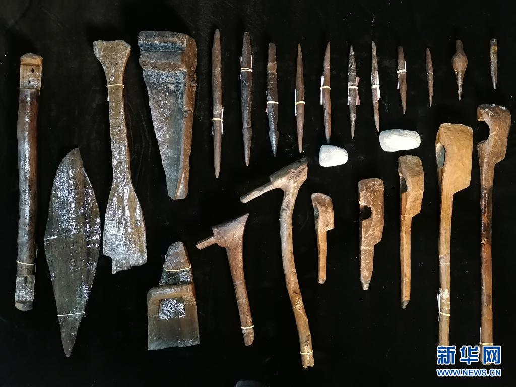 浙江余姚市井头山新石器时代遗址出土的木器(资料照片)。