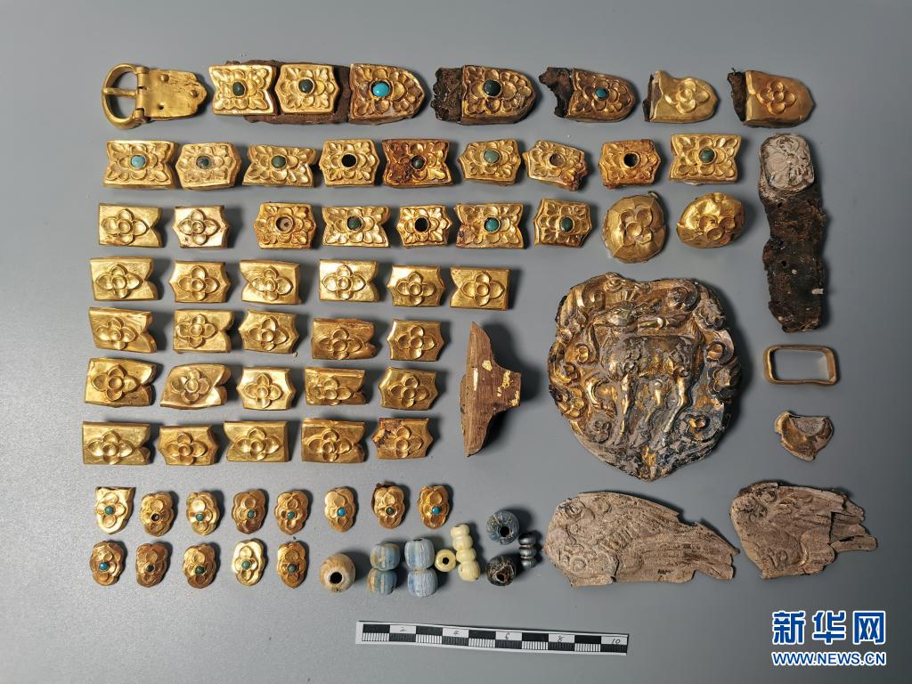 青海都兰县热水墓群2018血渭一号墓出土的金饰(资料照片)。