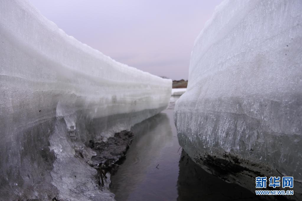 随着气温回升,地处黑龙江省东南部的镜泊湖世界地质公园小北湖流域,河面上的坚冰逐渐开始消融。据牡丹江市水务局工作人员介绍,受去年秋冬季降水偏多和极寒天气影响,小北湖流域去年冬季形成了较厚的冰层,十分壮观。