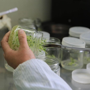 3月26日,在甘肃省定西市安定区香泉镇马铃薯种薯扶贫产业园,工人给马铃薯脱毒组培苗浇水。