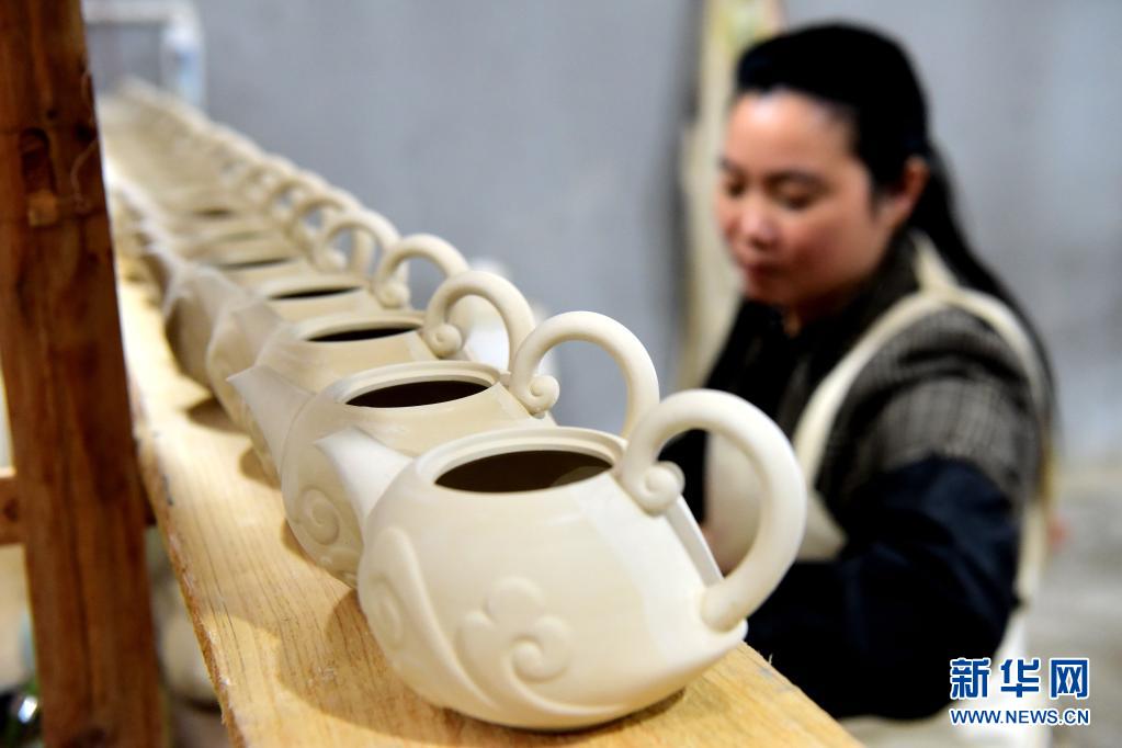近年来,河南省宝丰县不断推进汝瓷产业发展,加快汝瓷产业结构调整和产品质量优化升级。目前,全县汝瓷烧制技艺代表性传承人已达百余人,汝瓷烧制企业和研究机构124家,年产汝瓷800余万件(套)。新华社记者 朱祥 摄