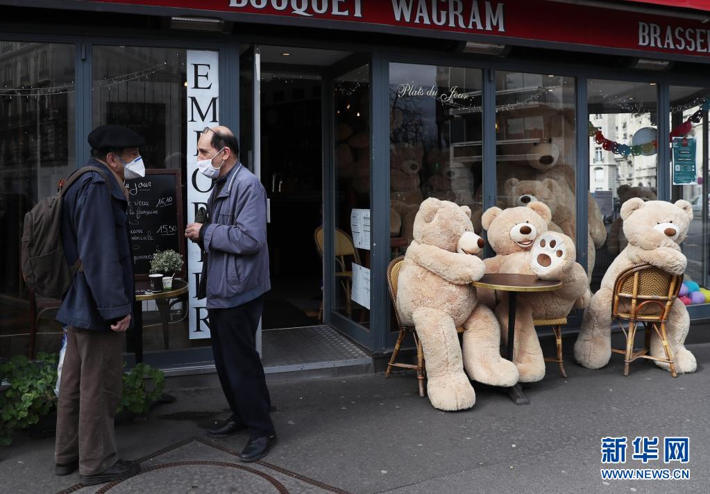 当天,一群憨态可掬的超大号泰迪熊“占领”了没有顾客的餐馆、咖啡馆,四仰八叉“享受”咖啡、香槟和暖阳。据报道,这些泰迪熊均由在巴黎经营书店的菲利普·拉布雷尔提供。他2018年10月开始把这些毛绒玩具借给很多地方摆放,新冠疫情以来也没有间断,给路过的人们带来笑容。拉布雷尔说,他在去年疫情暴发后买了更多泰迪熊,用于装点市容。受新冠疫情影响,法国的餐馆、咖啡馆、酒吧等公共场所自去年10月底一直关闭至今,只能提供外卖服务。