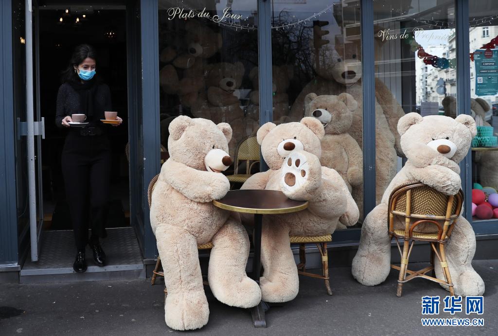 当天,一群憨态可掬的超大号泰迪熊“占领”了没有顾客的餐馆、咖啡馆,四仰八叉“享受”咖啡、香槟和暖阳。据报道,这些泰迪熊均由在巴黎经营书店的菲利普·拉布雷尔提供。他2018年10月开始把这些毛绒玩具借给很多地方摆放,新冠疫情以来也没有间断,给路过的人们带来笑容。拉布雷尔说,他在去年疫情暴发后买了更多泰迪熊,用于装点市容。受新冠疫情影响,法国的餐馆、咖啡馆、酒吧等公共场所自去年10月底一直关闭至今,只能提供外卖服务。