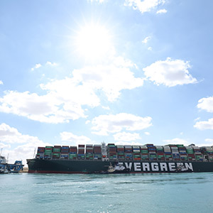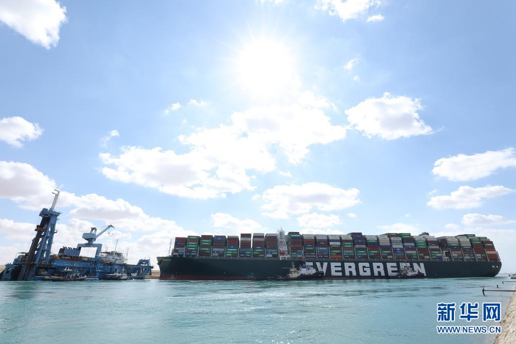 3月26日,救援船只在埃及苏伊士运河上重型货船搁浅现场进行作业。新华社发(苏伊士运河管理局供图)