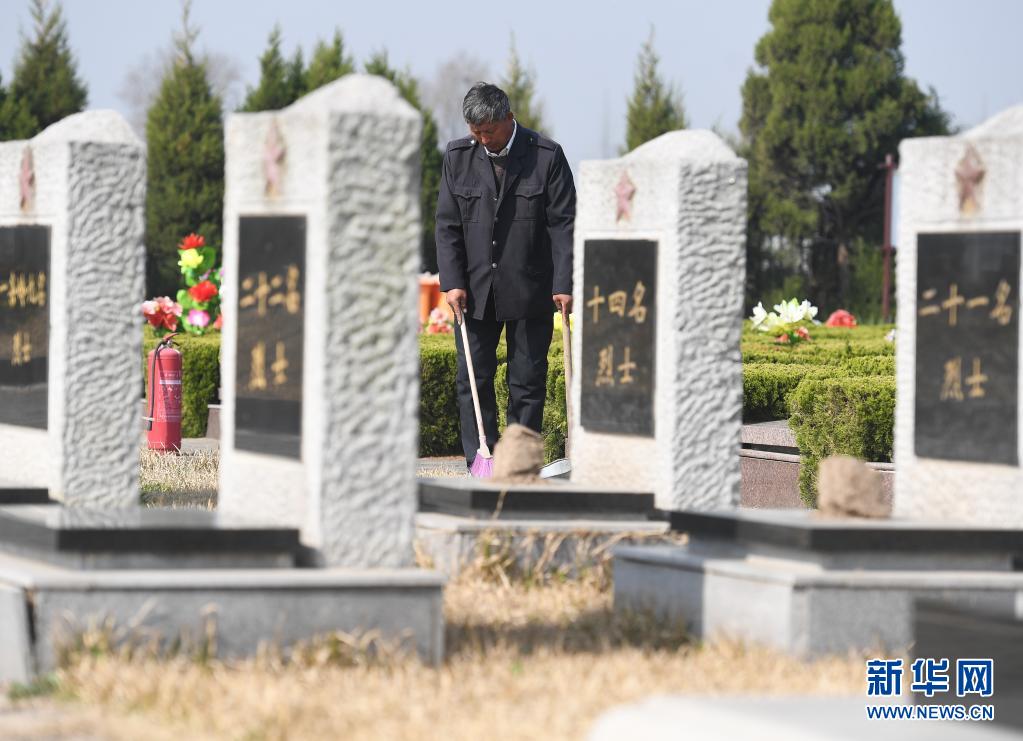 3月25日,卞康全在五条岭烈士陵园内打扫。新华社记者 季春鹏 摄