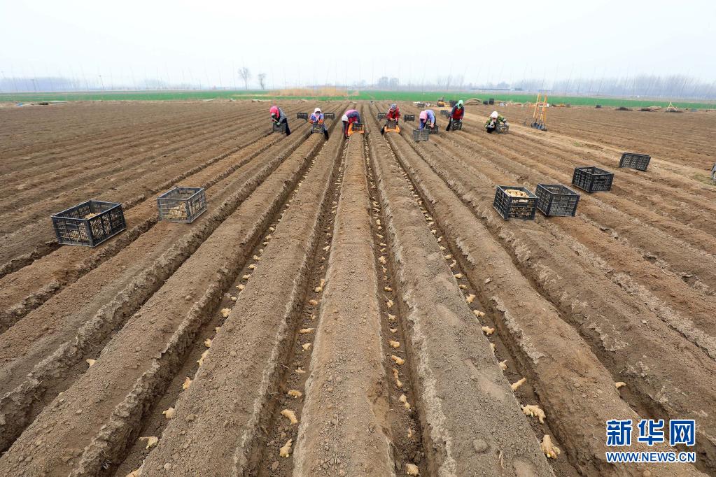 随着气温升高,河北省唐山市滦南县司各庄镇农民抢抓农时,种植生姜。去年该镇种植生姜取得了较好的经济效益,今年当地生姜种植面积进一步增加。